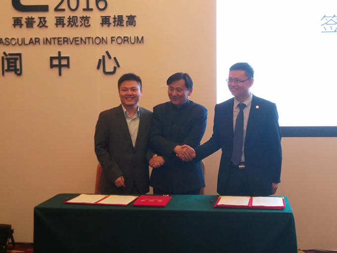 2016年4月22日,石家庄,在第十九届全国介入心脏病学论坛上,中国心血管防治战线的权威公益机构--中国心血管健康联盟、全球领先的生物制药企业阿斯利康和国内临床信息系统领导品牌麦迪斯顿公司共同签署了《加速胸痛中心建设战略合作备忘录》,并举行了签约仪式新闻发布会。