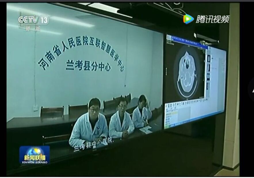 远程疑难病例现场会诊。实时实现省人民医院专家和县级医院专家面对面交流。图为省医耳鼻喉科专家王广科主任通过远程会诊中心对一个在兰考县医院住院患者的病情进行分析,制定诊治方案,指导县级医生工作。